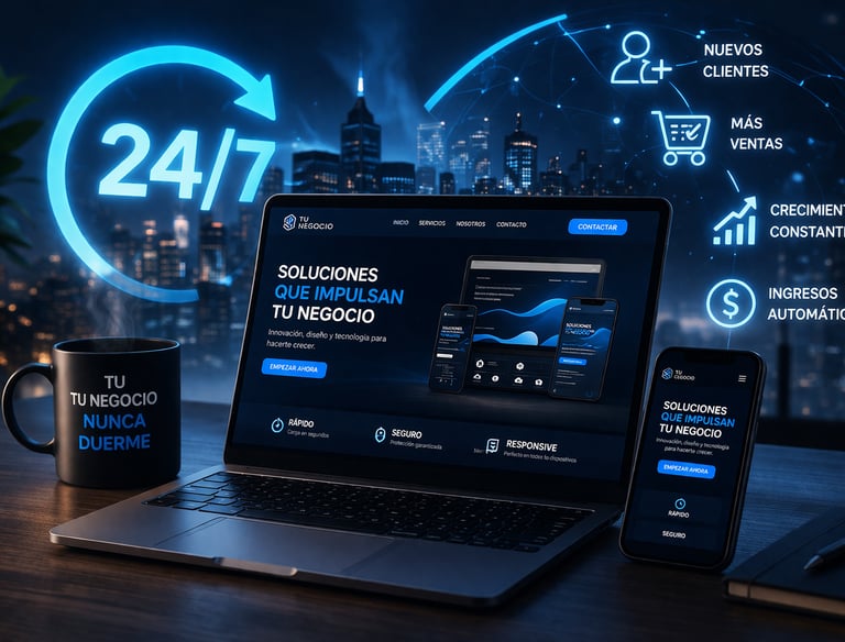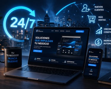 Tu web trabaja por ti todo el día, todos los días. Mientras duermes, puedes estar generando clientes y ventas automáticamente.