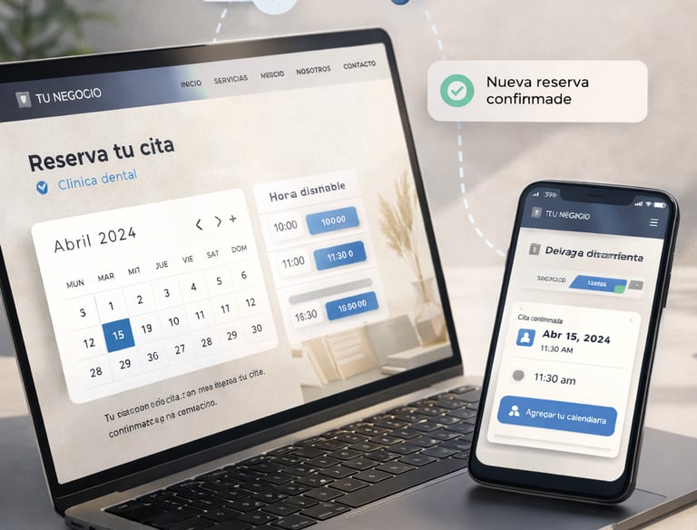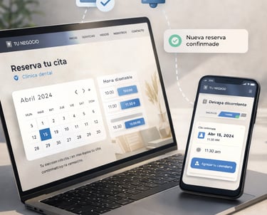 Tus clientes podrán reservar citas, servicios o reuniones directamente desde tu web, sin llamadas ni mensajes
